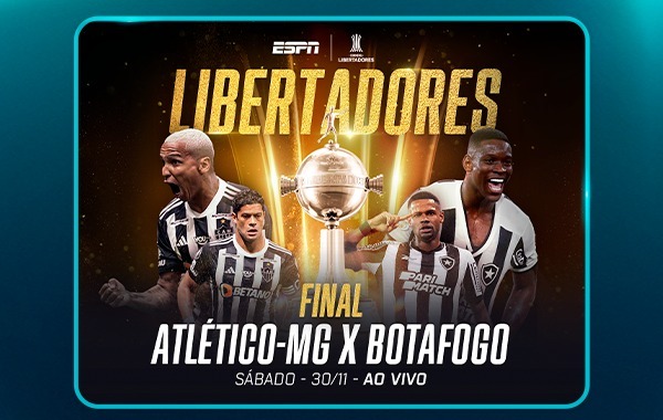 A grande final da CONMEBOL Libertadores será destaque da ESPN e do Disney+ neste sábado, com Atlético-MG e Botafogo decidindo o troféu continental em Buenos Aires, na Argentina. O jogo marcado para às 17h será o principal destaque da programação da emissora, que neste ano exibiu mais de 50 jogos da competição para todo país.