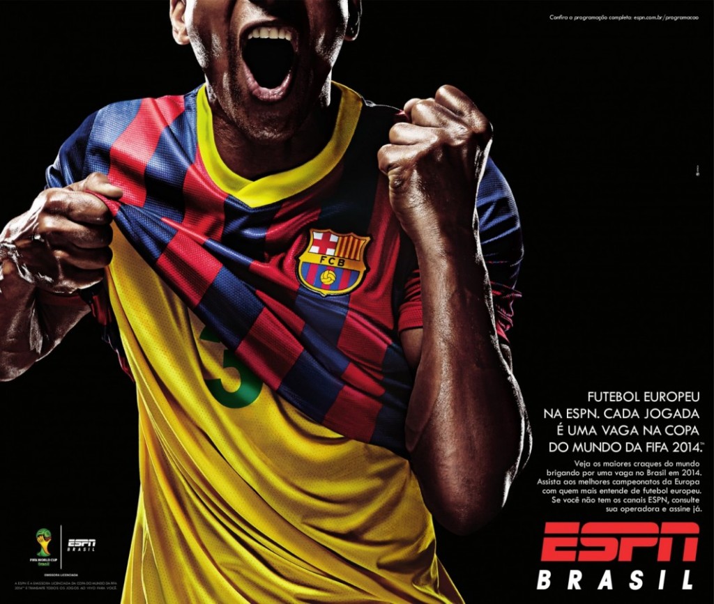 São Paulo, novembro de 2013 – A partir de desta semana, a ESPN lança sua nova campanha de marketing. O projeto, que foi desenvolvido com a agência África, promove os campeonatos europeus e faz a conexão com a Copa do Mundo da Fifa 2014, um dos eventos mais importantes para o canal e para o mundo dos esportes. O fã do esporte poderá conferir várias peças da campanha espalhadas por todo o Brasil na Internet, painéis da rede Eletromídia, nas estações da CPTM, no mobiliário urbano de São Paulo (SP), jornais, rádios e filmes para TV por assinatura.