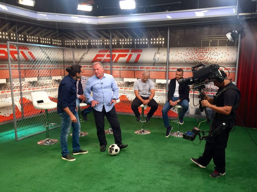 O craque esteve tão à vontade na resenha com os boleiros que até simulou uma cobrança de falta, mostrando os segredos de sua batida infalível na bola. Detalhe para a formação da barreira, que contou com os outros integrantes do programa. Rodrigo Rodrigues foi o goleiro. Será que a bola entrou?
