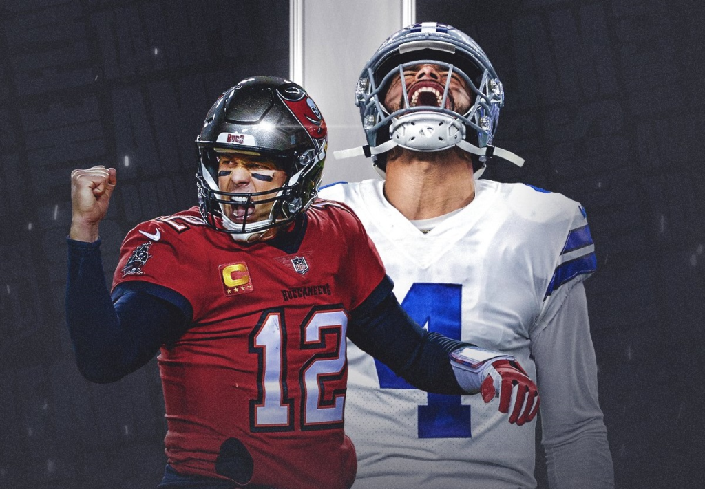 O atual campeão Tampa Bay Buccaneers, de Tom Brady, enfrenta o Dallas Cowboys, de Dak Prescott, no confronto de abertura da 102ª edição da National Football League. A primeira partida da temporada regular será atração ao vivo da ESPN e do Star+ nesta quinta-feira a partir das 21h15, com narração de Ari Aguiar e comentários de Paulo Antunes.