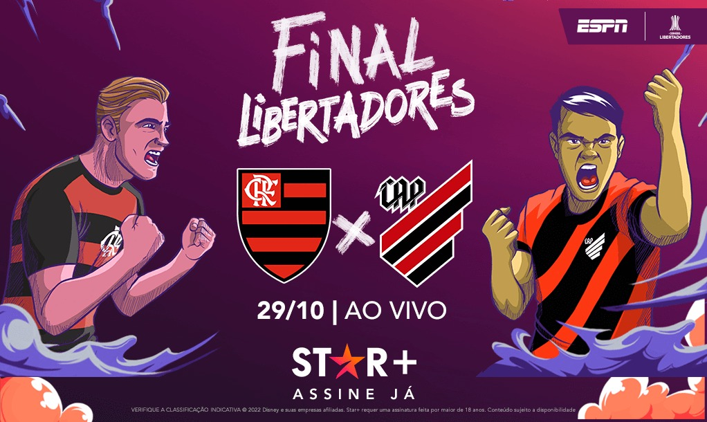 A final da Libertadores será disputada no próximo sábado (29), em Guayaquil, Equador. Envolvendo dois clubes brasileiros, Flamengo e Athletico-PR, o jogo será exibido para todo Brasil através da ESPN na TV por assinatura e os direitos de exibição no streaming serão exclusivos da plataforma Star+.