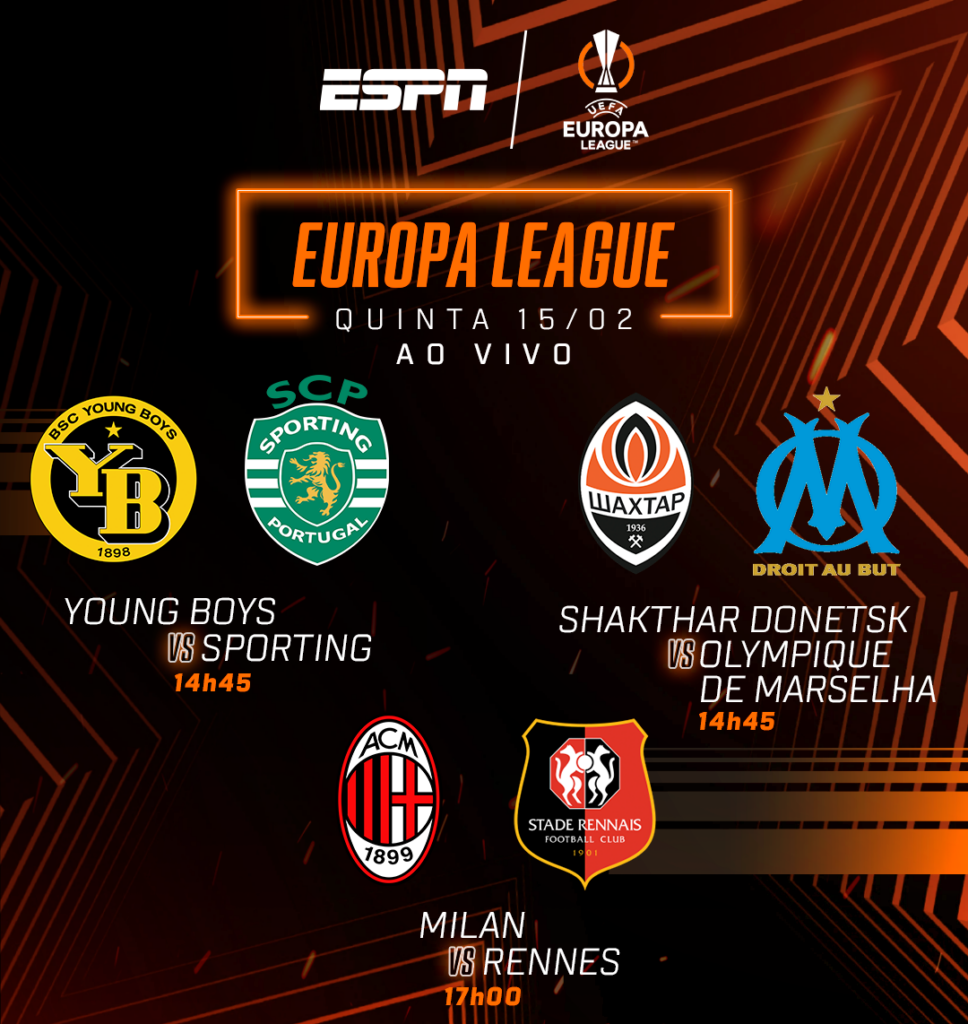 Os fãs de futebol terão acesso a um prato cheio de jogos internacionais. Com os gigantes Milan, Benfica e Ajax em ação nesta fase, a ESPN e a plataforma de streaming Star+ exibirão 32 partidas dos torneios UEFA neste dia 15 (ida) e no dia 22 (volta), totalizando 48 horas de futebol ao vivo. As partidas serão transmitidas em dois horários, 14h55 e 17h.