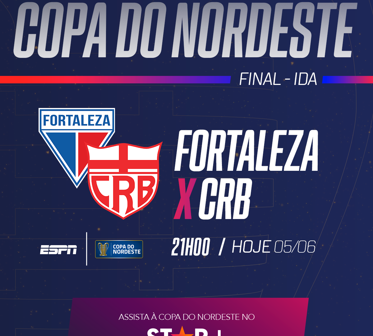 A ESPN volta a focar na Copa do Nordeste no domingo (9), quando o CRB receberá o Fortaleza em Maceió para a grande decisão do torneio. A partida está marcada para as 16h30 e, mais uma vez, terá cobertura especial da emissora.