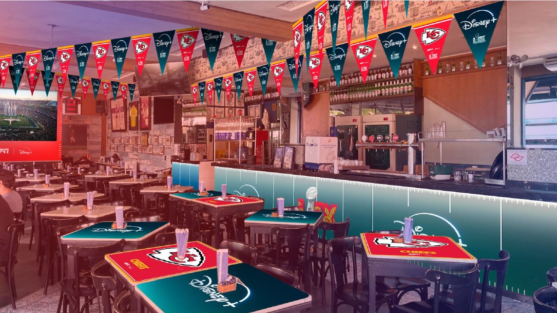 Para tornar o evento ainda mais especial, o local contará com uma blitz da Rádio Disney, Desafio de Field Goal e uma ambientação que incluirá bandeiras, decorações de mesa, flanelas, cachecóis, porta-copos e barris envelopados com os elementos de Chiefs e Eagles, deixando os torcedores imersos no clima de rivalidade e emoção que marcam o Super Bowl.