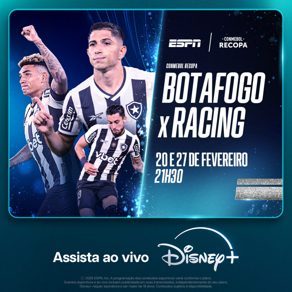 O Botafogo, grande campeão da CONMEBOL Libertadores, enfrentará o Racing, da Argentina, campeão da Sul-Americana de 2024. O primeiro encontro que marca a disputa pelo título da Recopa será realizado nesta quinta-feira (20), com transmissão exclusiva na ESPN e no Disney+.