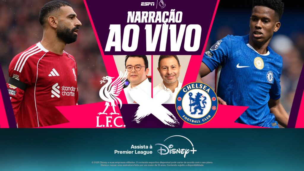 A ESPN anuncia uma nova iniciativa exclusiva para o seu canal no YouTube, que já conta com mais de 7.2 milhões de inscritos e se consolidou como um dos principais hubs digitais de esportes no Brasil. A partir desta temporada, partidas de grande destaque terão narrações transmitidas ao vivo na plataforma, em uma experiência interativa para o fã do esporte. A estreia será neste sábado (4), às 13h30, com o jogo entre Chelsea e Liverpool. O jogo será exibido na ESPN e no Disney+.